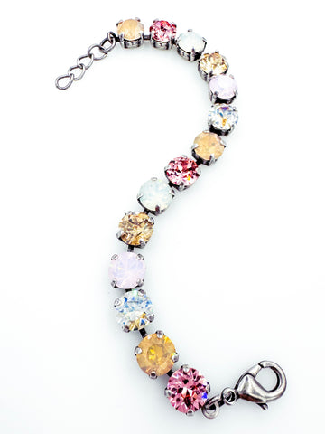 Sweet Sparkles' Duchess Bracelet featuring fourteen genuine Austrian crystals hand-set in your choice of plated brass with a gold, antique silver, or rose gold finish. Bracelet measures 7.5” long and length is adjustable to comfortably fit most wrists. Plated Brass setting (completely nickel-free).