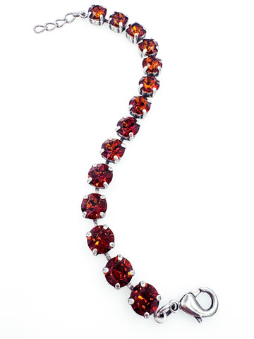 Sweet Sparkles' Duchess Bracelet featuring fourteen genuine Austrian crystals hand-set in your choice of plated brass with a gold, antique silver, or rose gold finish. Bracelet measures 7.5” long and length is adjustable to comfortably fit most wrists. Plated Brass setting (completely nickel-free).