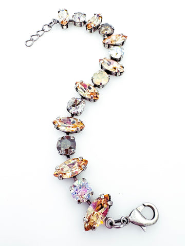 Sweet Sparkles' Tiara Bracelet featuring fifteen genuine Austrian crystals hand-set in your choice of plated brass with a gold, antique silver, or rose gold finish.